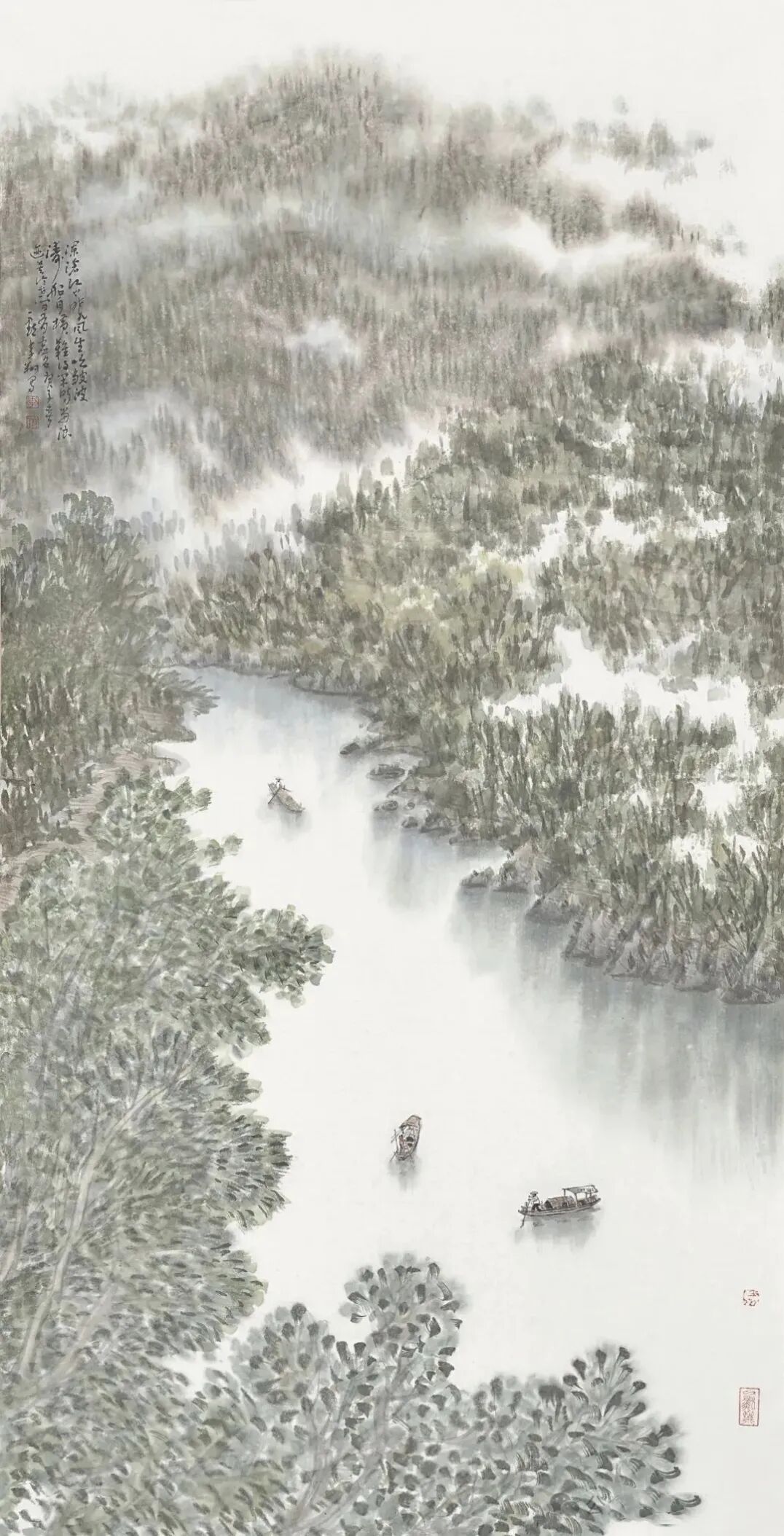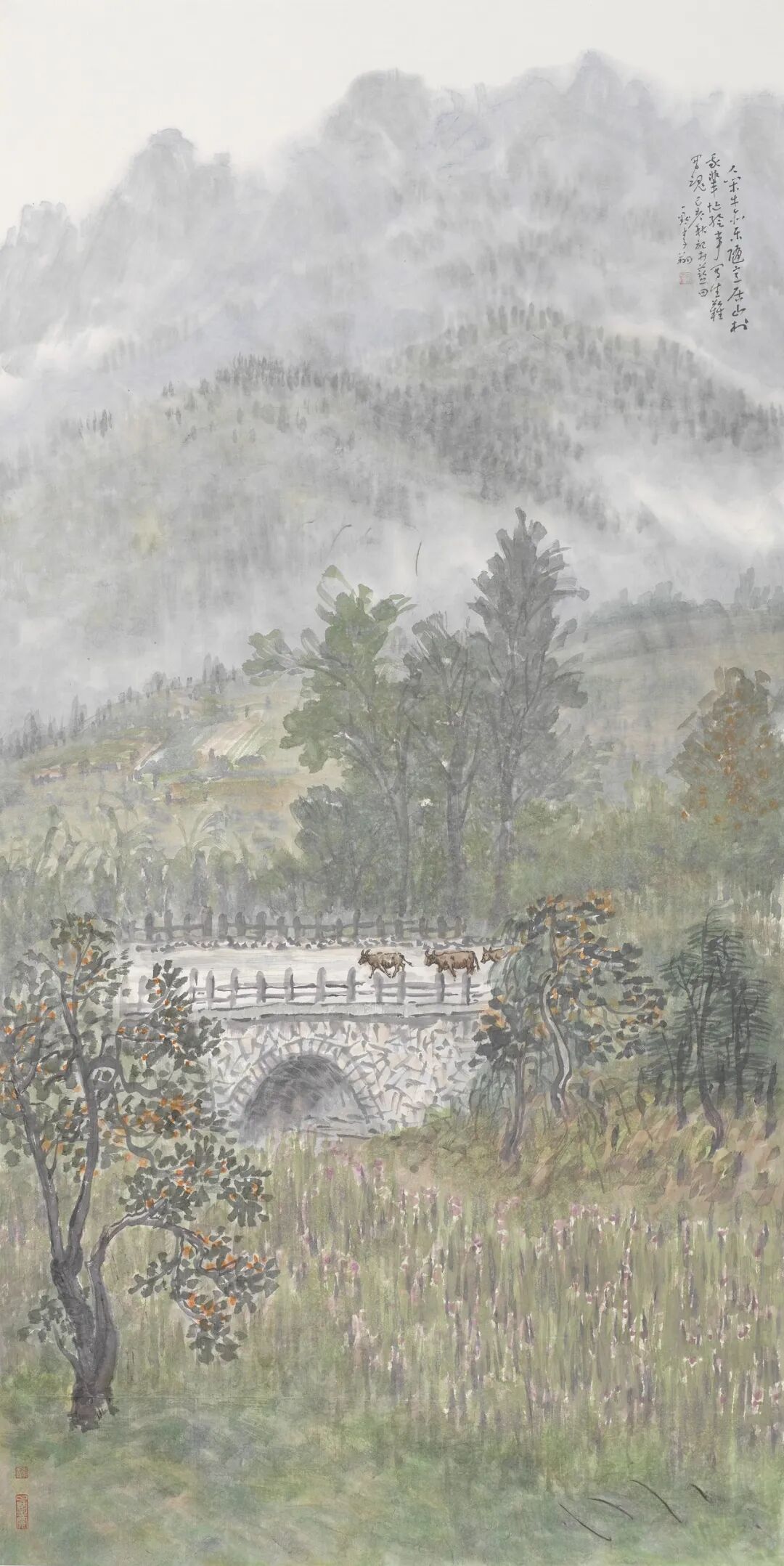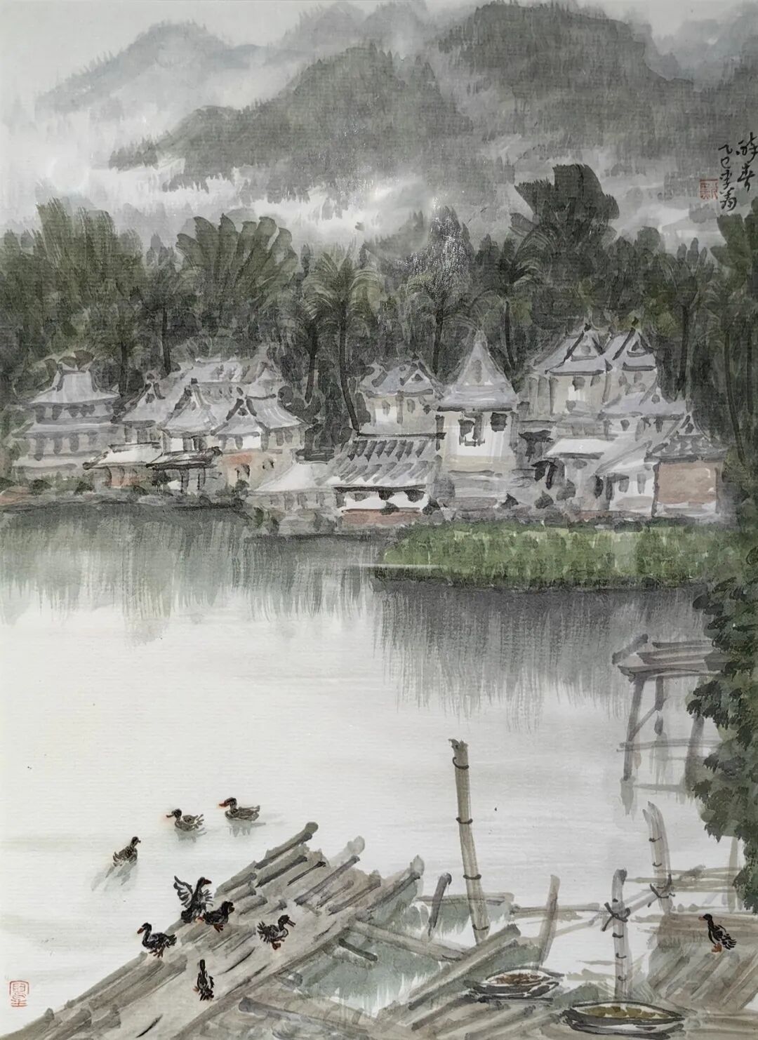 李翔的画,自带一种让人沉静的力量。案前展卷,不必急于寻章法、辨笔墨,是江南晨雾漫过田埂的润,是远山黛色浸在溪水里的透,恰如王维“空山新雨后”的意趣,不喧嚣,不张扬,却自有一种沁入心脾的温软。